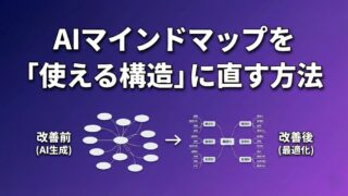 AI活用 AIマインドマップを「使える構造」に直す方法 ChatGPTが出力したマインドマップは粒度バラバラ・重複だらけ。収束テクニックと修正手順で、仕事で使える構造に整える方法を解説。 2026.02.19 AI活用