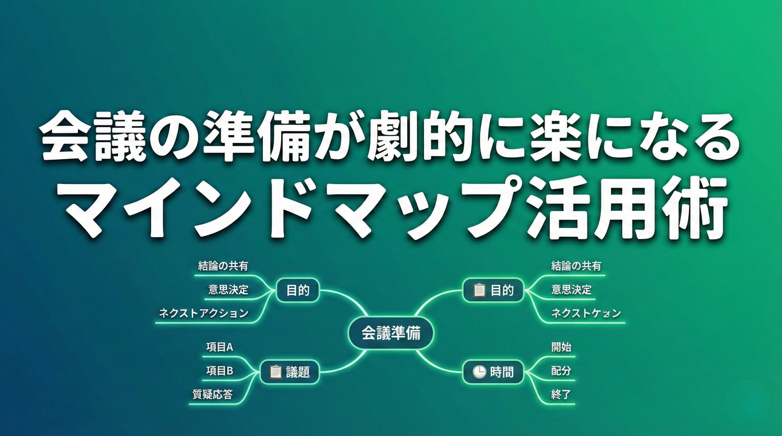 マインドマップでアジェンダを作れば、議題の優先順位・関係性・ゴールが一目で把握できる。