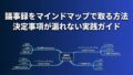 この記事では、マインドマップを使ったアジェンダの作り方を5ステップで解説する。コピペで使えるテンプレートも用意した。次の会議から、すぐに実践できる。