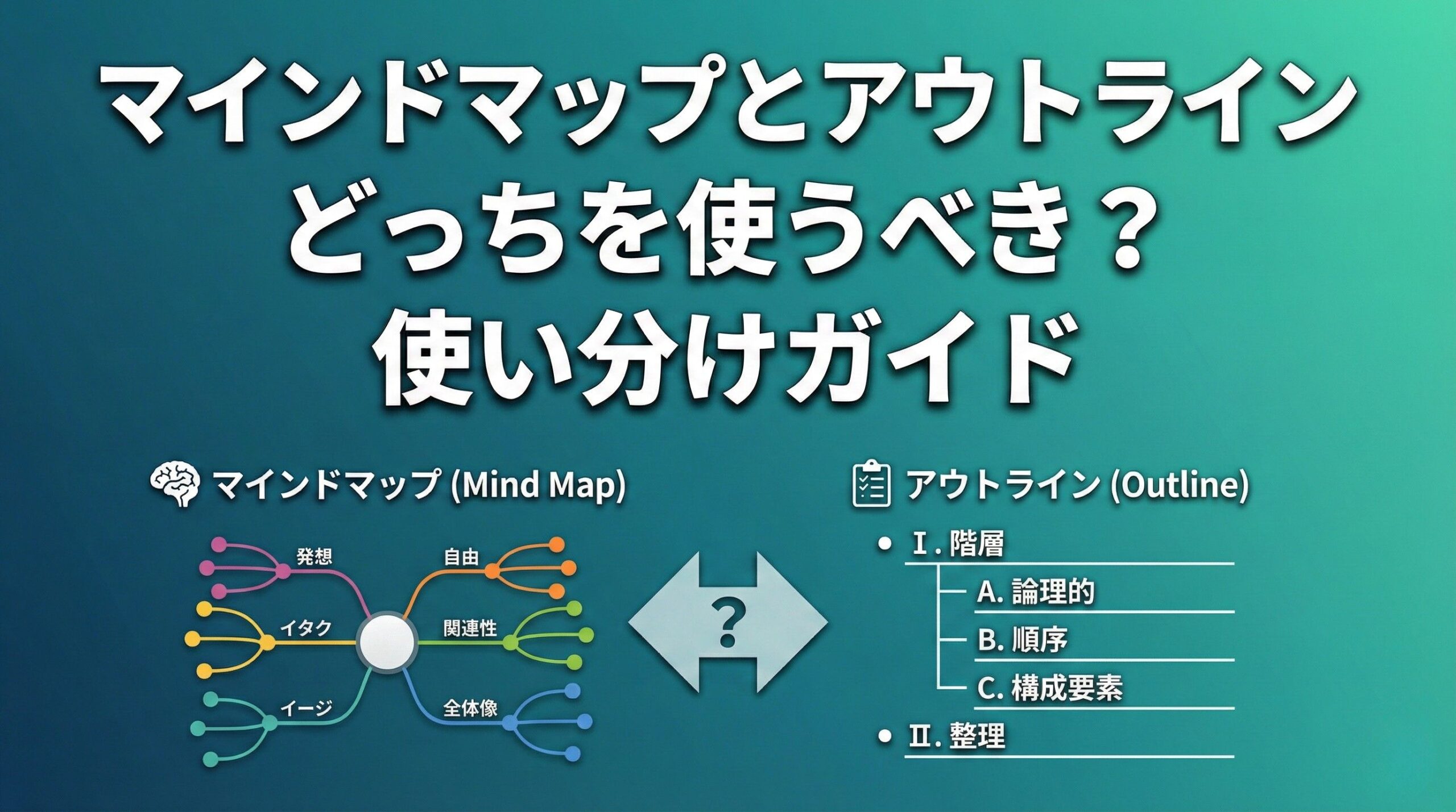結論から言えば、発散思考にはマインドマップ、収束・文章化にはアウトラインが向いている。ただし、どちらか一方に固執するのではなく、併用するのが最も効果的だ。