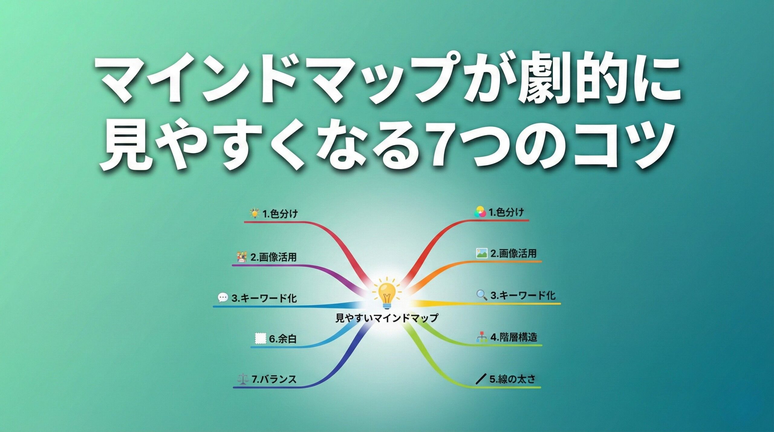見やすいマインドマップには共通点がある。整理上手な人は無意識にやっているが、実は7つのルールに集約できる。このルールを押さえれば、作る段階から「見やすさ」を設計できる。