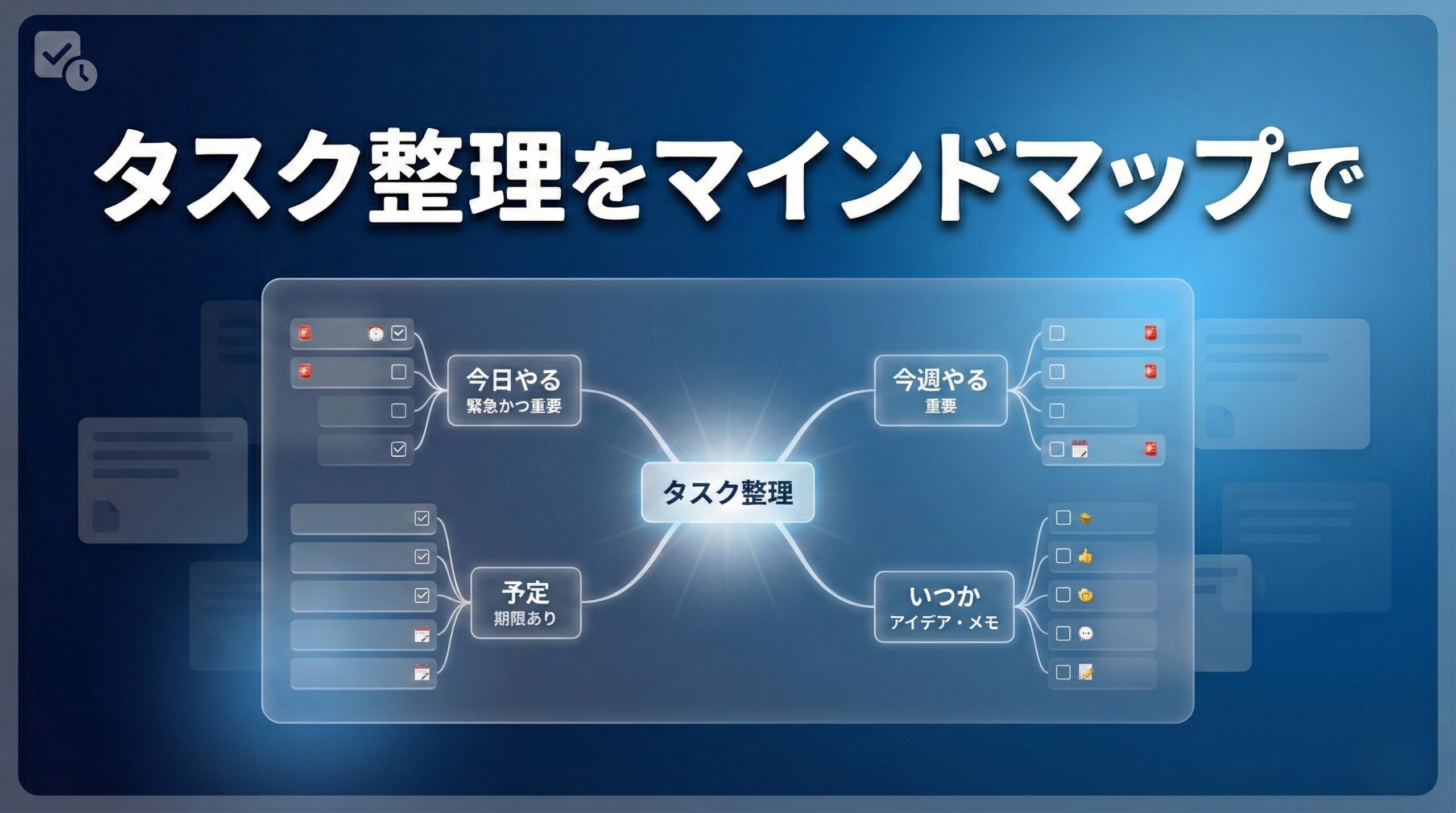タスクが溜まる原因は、「頭に置いたまま」「分類していない」「次のアクションが曖昧」の3つ。マインドマップを使ったGTD式3ステップで解決できる。